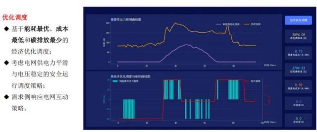 AI 驱动调度优化:基于深度学习的功率预测模型,结合分时电价、碳排成本动态调整能源分配,实现 "用能成本最低 + 碳排放最少" 双重目标。