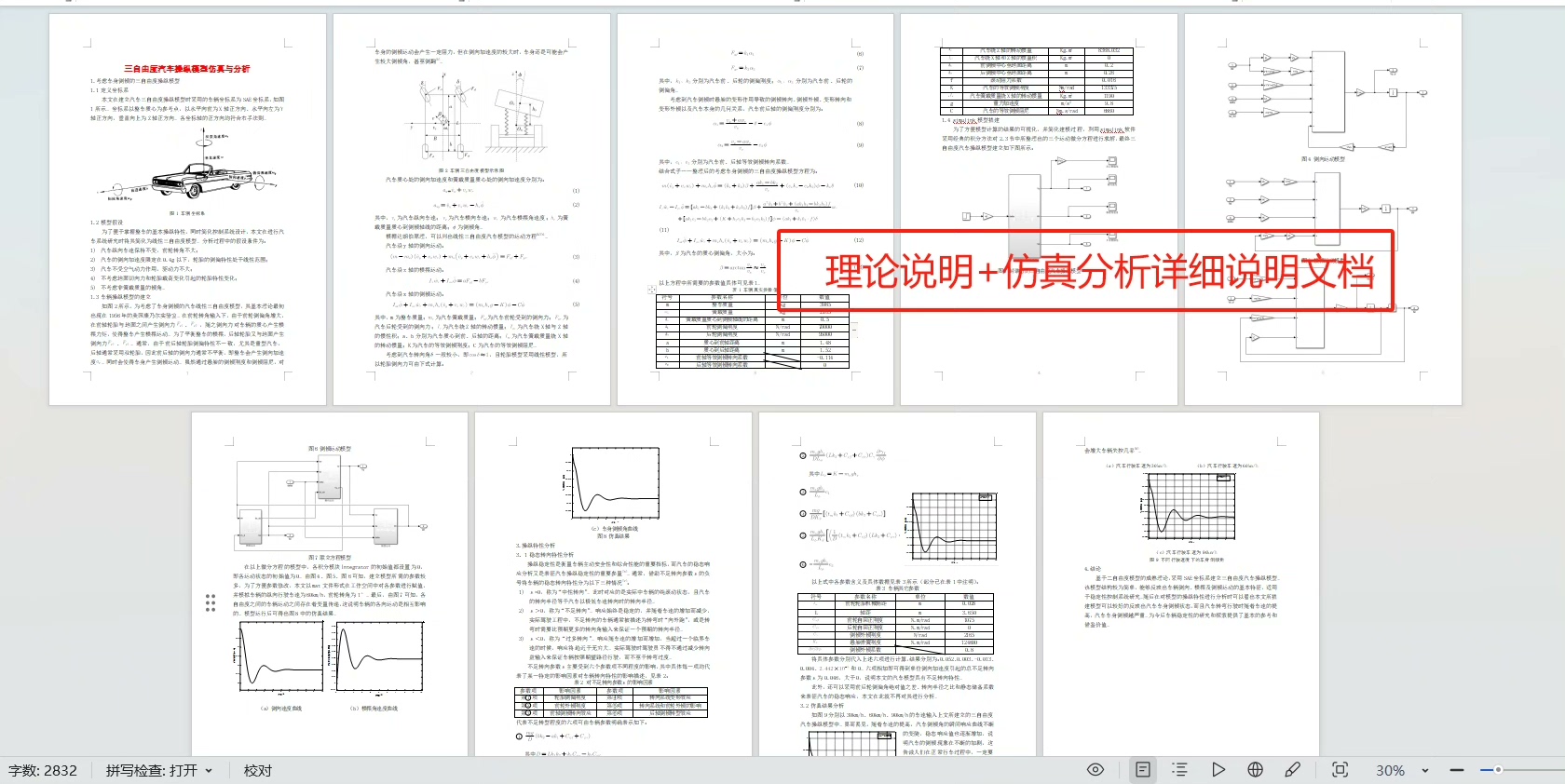 三自由度汽车操纵侧翻模型仿真 有说明文档 学习资料:附带整理好的Word理论分析说明文档,方便学习 ①基于二自由度模型的成熟理论,采用SAE坐标系建立三自由度汽车操纵模型。 ②该模型结构较为简单,能够反映出车辆侧向、横摆及侧倾运动的基本特征,适用于稳定性控制系统研究。 ③仿真结果:在对模型的操纵特性进行分析时可以看出本文所搭建模型可以较好的反映出汽车车身侧倾状态,而且汽车转弯行驶时随着车速的提高,汽车车身侧倾越严重