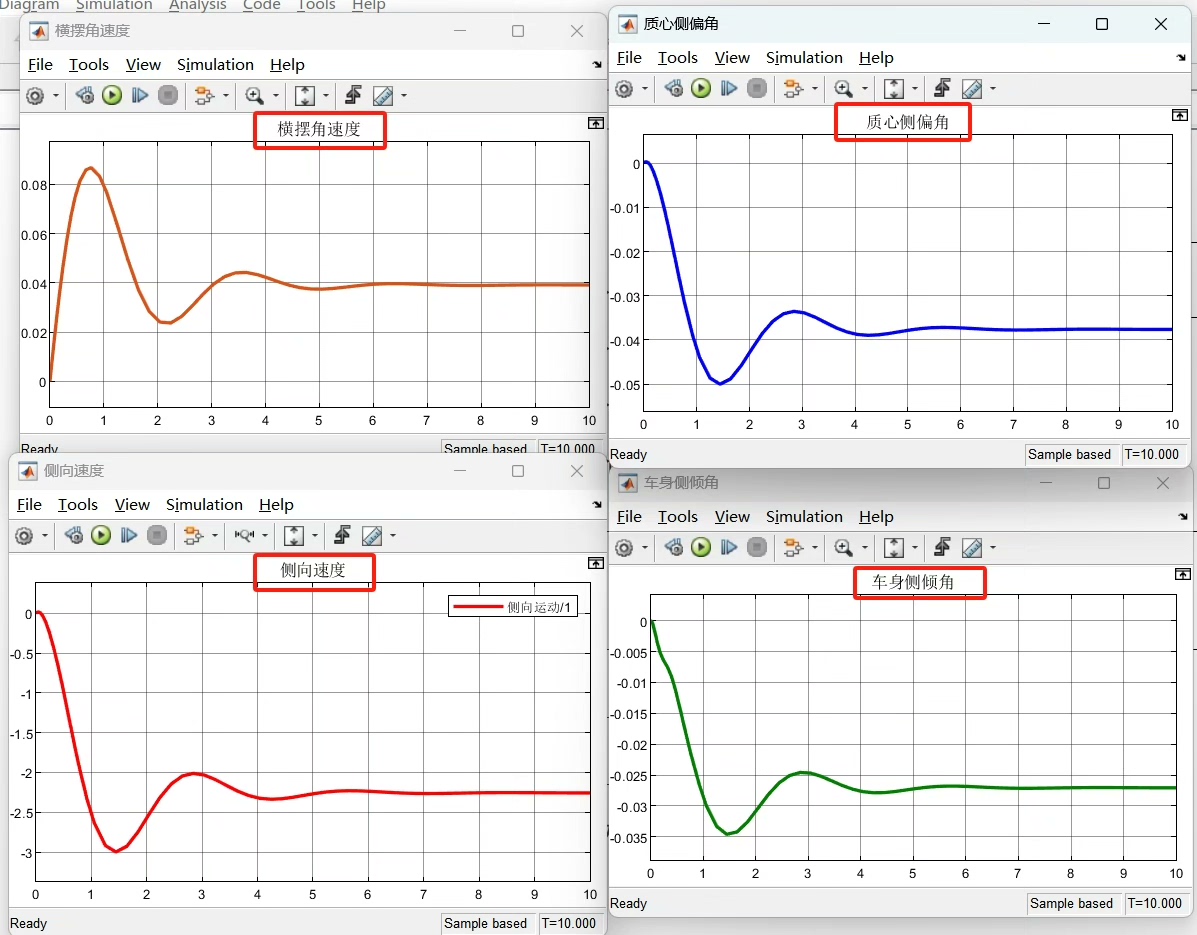 凌晨三点保存仿真数据时突然顿悟:所谓车辆稳定性控制,本质上是在侧倾角速度和横摆角速度之间走钢丝。下次试试把ESP控制逻辑接入这个模型,看能不能在奶茶杯将倾未倾的瞬间,用制动干预上演一场力挽狂澜的好戏。
