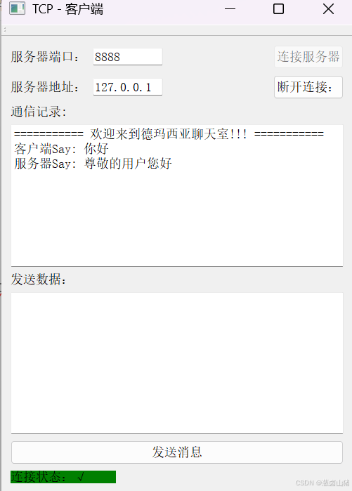 创建QTcpSocket connectToHost连接服务器 connected信号确认连接 连接readyRead信号读取数据 使用write发送数据 处理disconnected信号 close断开连接