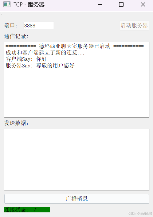 record->append("=========== 德玛西亚聊天室服务器已启动 ===========");