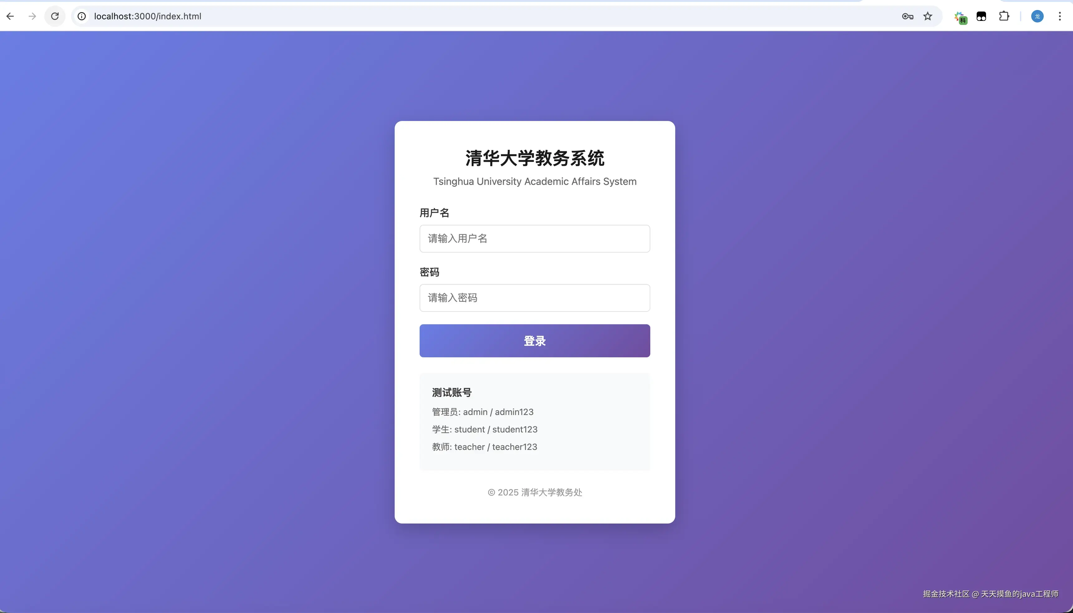"帮我开发一个清华大学的教务系统,仿照清华教务 UI,前后端分离,后端 Java,前端 Vue。"