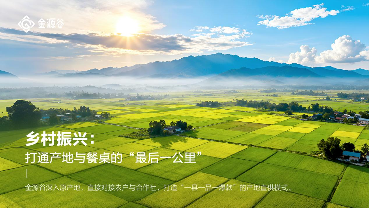 金源谷深入原产地,直接对接农户与合作社,打造"一县一品一爆款"的产地直供模式。通过数字化供应链,将优质农产品高效送达消费者手中,既保障了农民收益,也为城市家庭提供了新鲜、安全的地标产品。