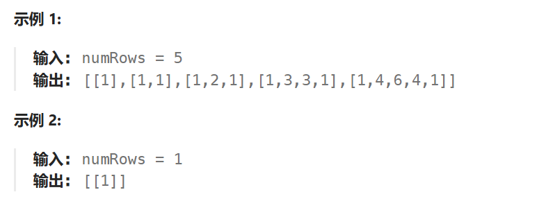 给定一个非负整数 numRows, 生成「杨辉三角」的前 *numRows*行。