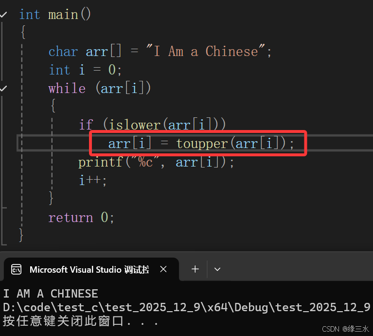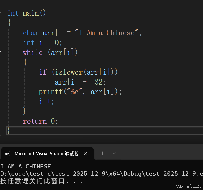 arr[i] -= 32;//小写字母ASCII码值比大写字母大32