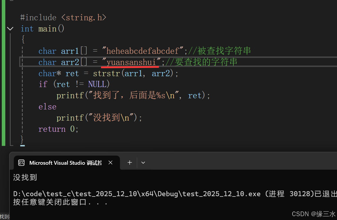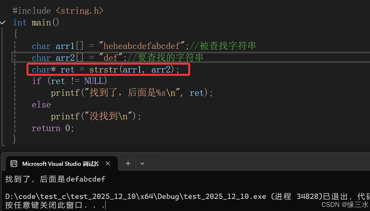 char arr1[] = "heheabcdefabcdef";//被查找字符串