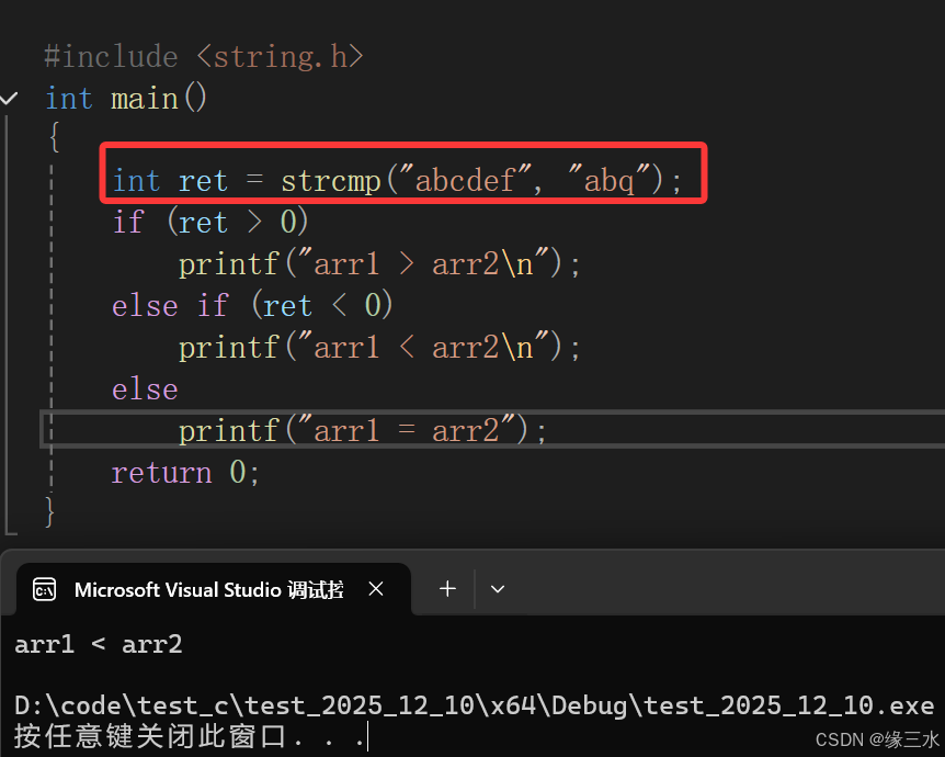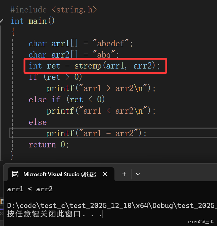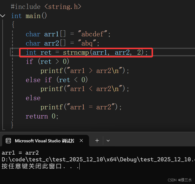 如图,只限制比较两个字符 ,由于arr1和arr2前两个字符相等,因此比较的结果为相等