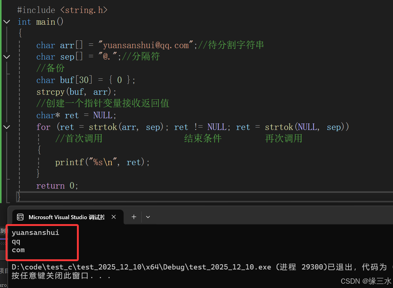 - 首次调用,传入待分割字符串指针和分隔符的指针
