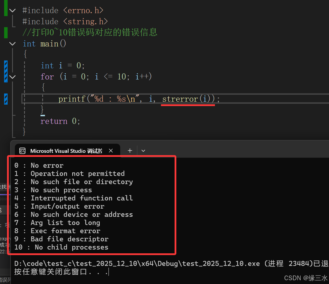 所以strerror函数 就能将错误数字翻译成错误信息,并以对应字符串指针形式返回