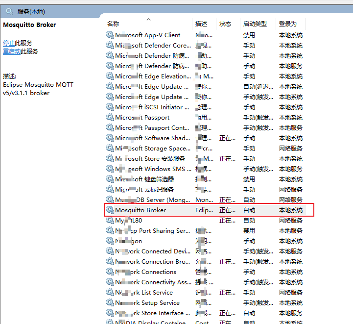 Win + R,输入services.msc,回车 - 在服务列表中找到 mosquitto