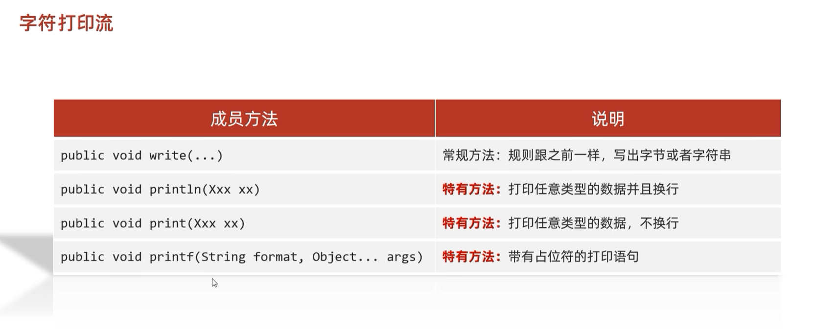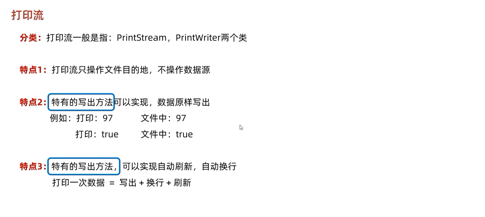 PrintStream= 字节版打印流(如System.out)PrintWriter= 字符版打印流(推荐用于文件文本输出