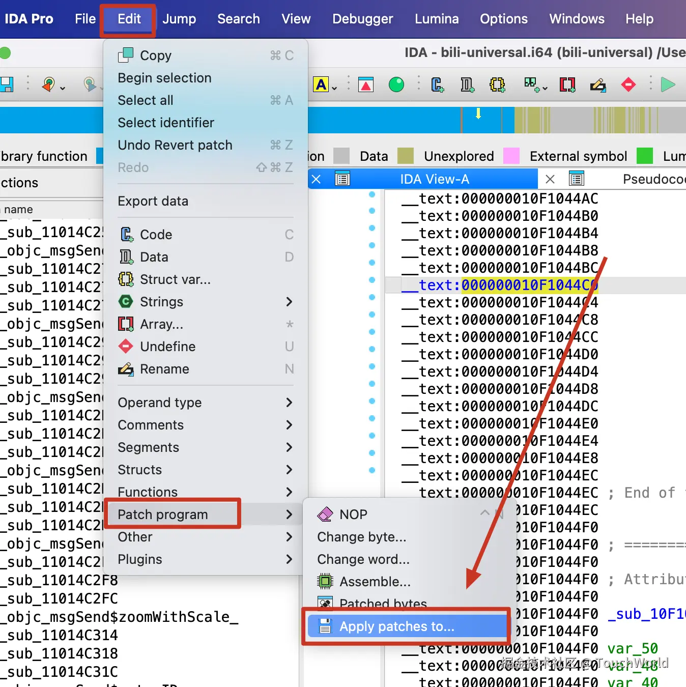 Mach-O文件中IDA->Edit->Patch program->Apply patches to input file->Apply patches