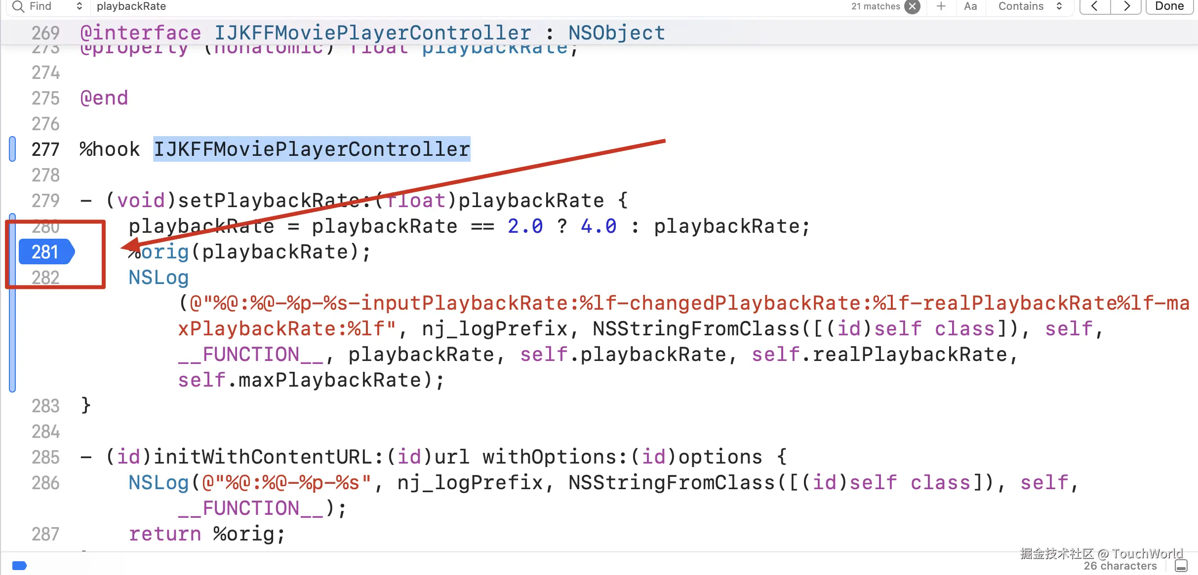 hookIJKFFMoviePlayerControllerFFPlay的- (void)setPlaybackRate:(float)playbackRate方法,用以打印日志