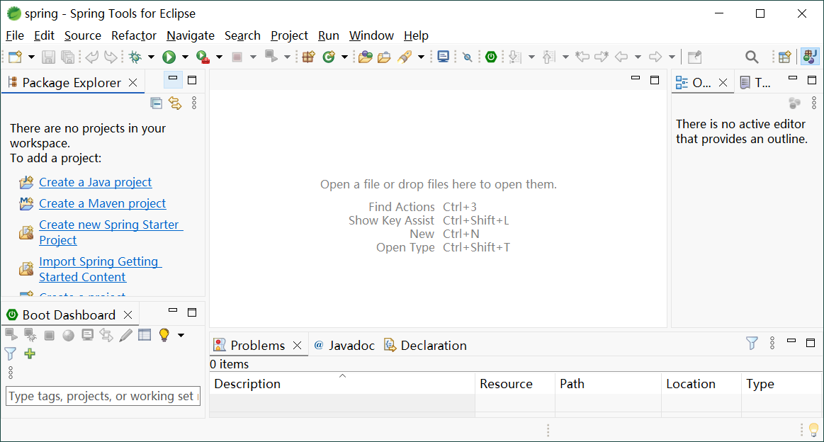 - 加载完毕之后就进入集成了 STS4 插件的 eclipse 界面了: