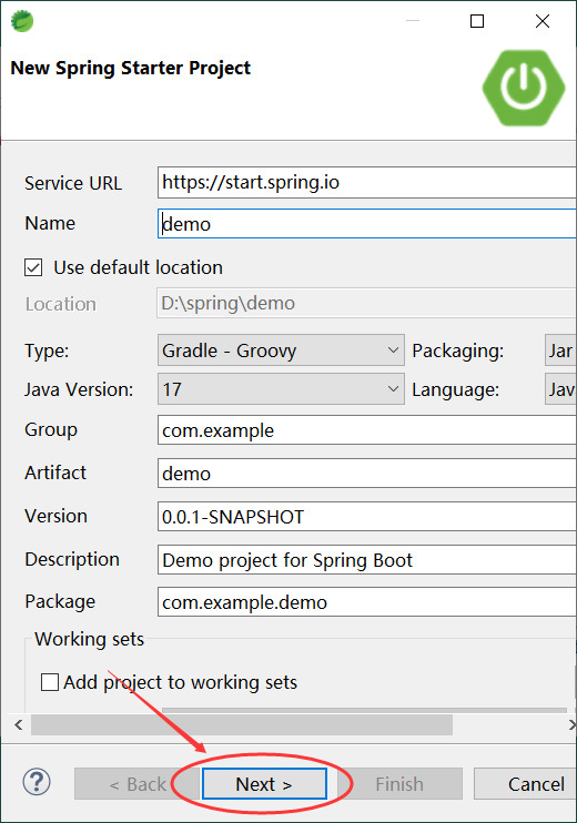- 点击左侧 Package Explorer 中的"Create new Starter Project",创建 Spring Boot 项目。可以直接点击"Next":
