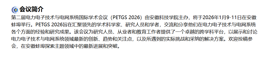 电力电子技术与电网系统的深度融合,是实现电网智能化、低碳化转型的核心路径。从电力电子装置的精准控制,到电网谐波的高效治理,再到新能源并网的稳定保障,技术创新正在重构电网运行的底层逻辑。PETGS 2026 会议聚焦该领域的前沿研究与工程实践,为全球电力电子与电网领域的研究者、工程师搭建了交流平台。未来需突破器件、控制、系统协同等核心瓶颈,推动电力电子技术更好地服务于新型电力系统建设,实现电网安全、高效、低碳运行。