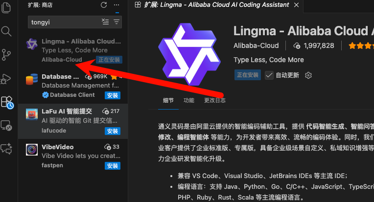 在vscode ssh远程连接中,要使用Lingma需要另外再安装一次(估计应该是安装到服务器上)