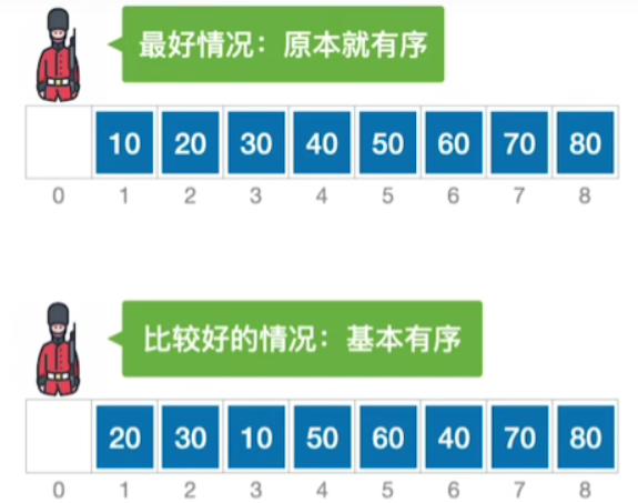 - 子表1:元素本就有序,直接插入排序元素顺序不变