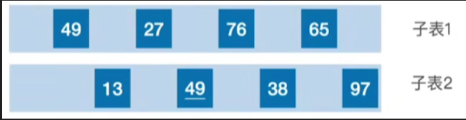 - 子表4:97>49,直接插入排序后,相当于交换两个元素的位置
