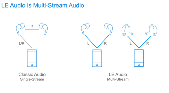 LE Audio是蓝牙技术联盟(SIG)在2020年推出的全新音频技术标准,以低功耗蓝牙5.2为基础,采用ISOC(isochronous)架构,引入了创新的LC3音频编码算法,具有更低的延迟和更高的传输质量,同时还支持多设备连接和音频分享等功能,为消费者带来了更加出色的音频体验。