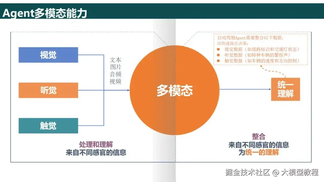 感知模块:文本场景以提示的方式分析用户的需要,多种信息场景以 CLIP、Whisper等图像识别和语音识别的方式访问,以API方式访问传感器采集的实时数据;