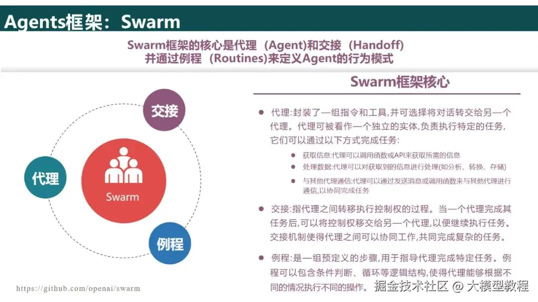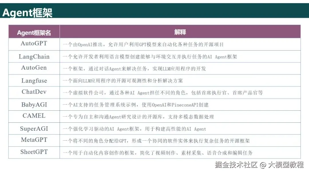 核心框架的选择:对于初学者,推荐使用LangChain(强大的模块化架构,提供了对工具的调用和内存的管理);对于需要进行复杂的多Agent协助的情况,推荐使用MetaGPT(支持Agent之间的角色划分)或Swarm(侧重Agent之间的交接);