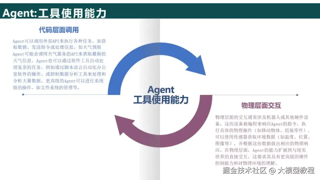 执行部分:在虚拟情景中,API被调用(例如发送电子邮件、生成报告等),在实体情景中,API被对接到硬件界面(例如机械臂的控制命令等)。