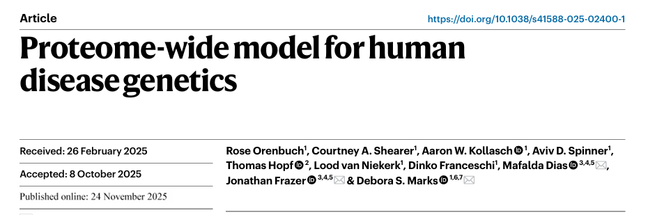 错义变异因其微妙且依赖上下文的影响,在遗传解释中仍是挑战。尽管当前预测模型在已知疾病基因中表现良好,但其评分未在蛋白质组中校准,限制了普遍性。为弥补这一知识空白,研究人员开发了popEVE------一种结合进化和人类群体数据的深度生成模型,以估计全蛋白质组范围内变异的有害性。popEVE在不高估有害变异负担的情况下实现了最先进的性能,识别出严重发育障碍队列中442个基因的变异,其中包括123个新候选基因。这些基因在功能上与已知疾病基因相似,其变异通常定位于关键区域。令人惊讶的是,popEVE能够利用子外显子优先识别可能的因果变异,即使不进行父母测序也能实现诊断。研究为罕见病变异的解释提供了可推广的框架,特别是在单例病例中,并展示了校准的进化知情评分模型在临床基因组学中的实用性。