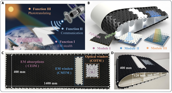 值得一提的是,这种模块化设计支持 "即插即用",可将电磁吸收、微波透明、光学透明等不同功能单元无缝集成,如同搭积木般实现功能定制。