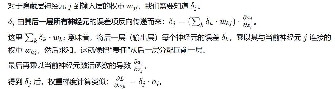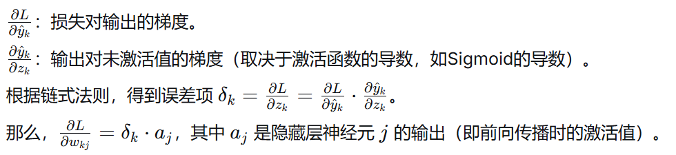 假设一个简单的三层网络(输入-隐藏-输出),对于连接隐藏层神经元 到输出层神经元