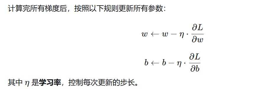 使用梯度下降(或其变种)更新每一层的权重和偏置,以减小误差。
