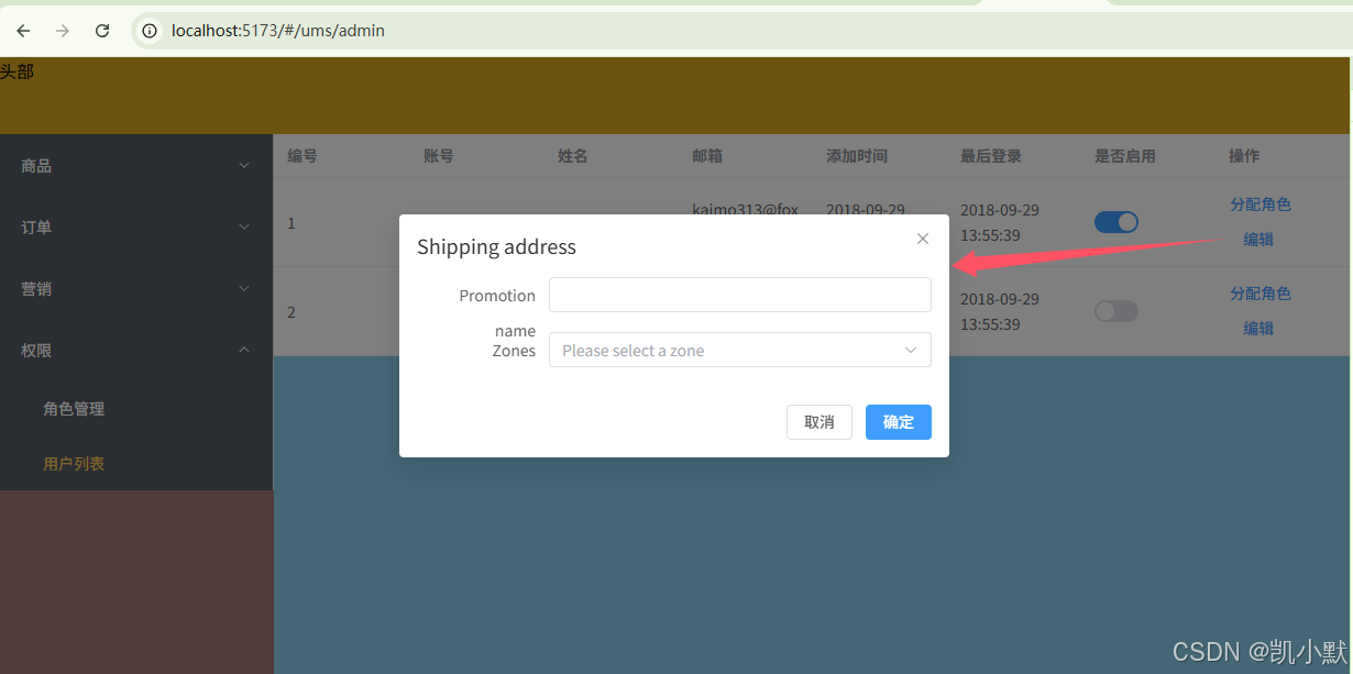 下面我们来实现点击用户列表里面的编辑弹出弹框