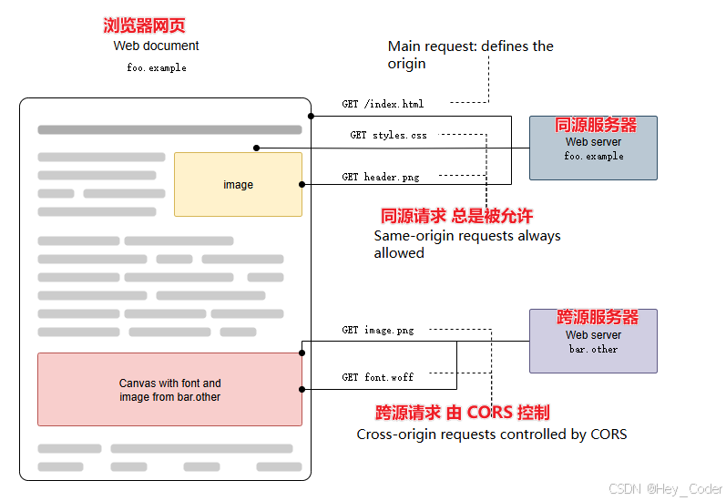 - 网站 A (https://foo.example )的网页 想要访问 网站B ( https://bar.other) 的资源。