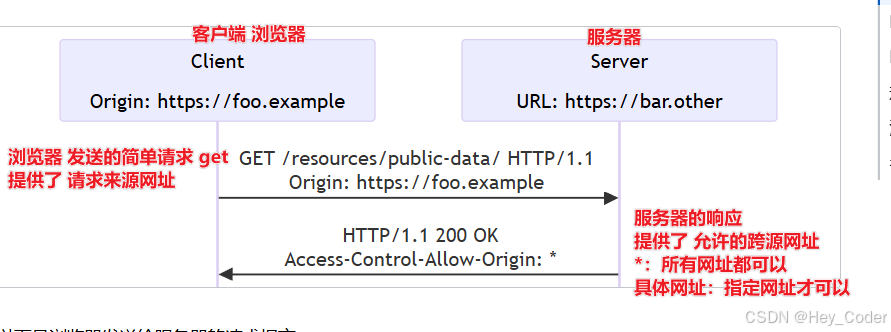 CORS理由 :如,有时候,我们跨源访问别人家的资源时,要经过别人的同意,CORS可以让别人通过服务器设置 "是否同意访问请求,同意哪种请求",也可以让我们提供自身网站的一些信息,让对方服务器进行判断。 -