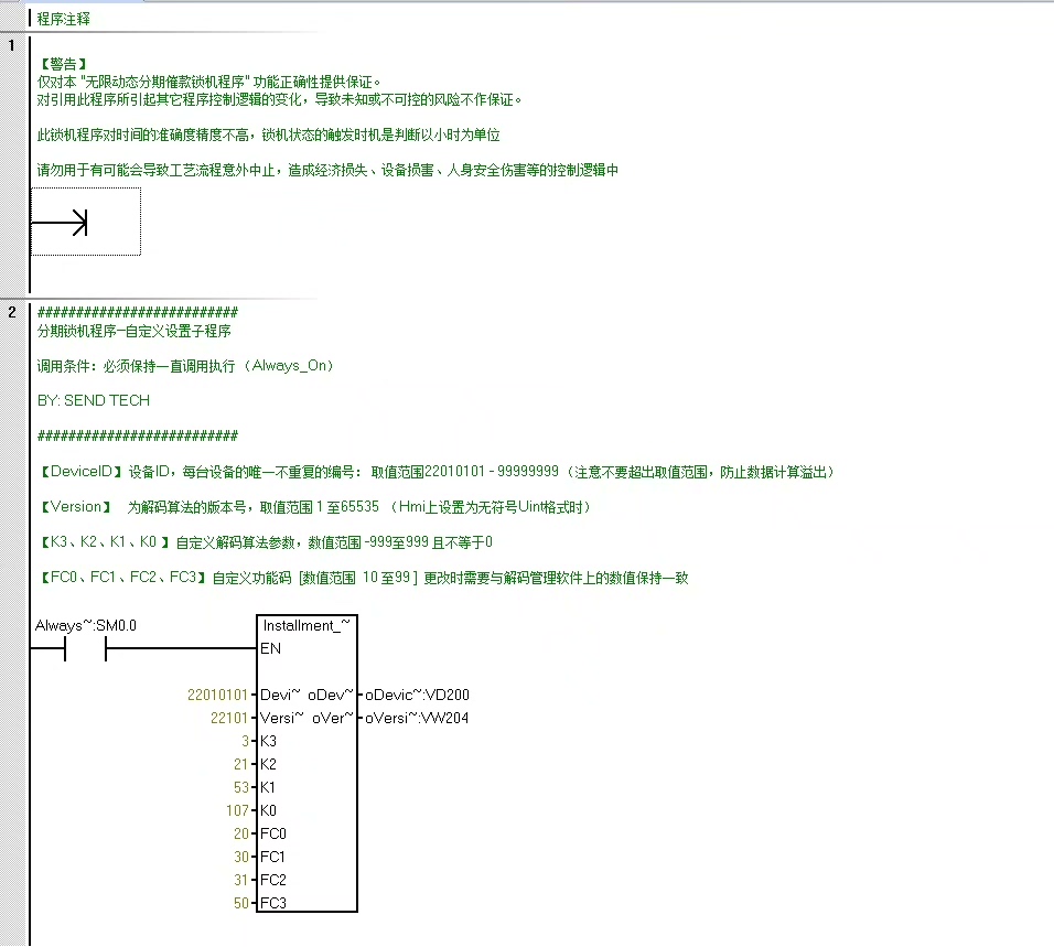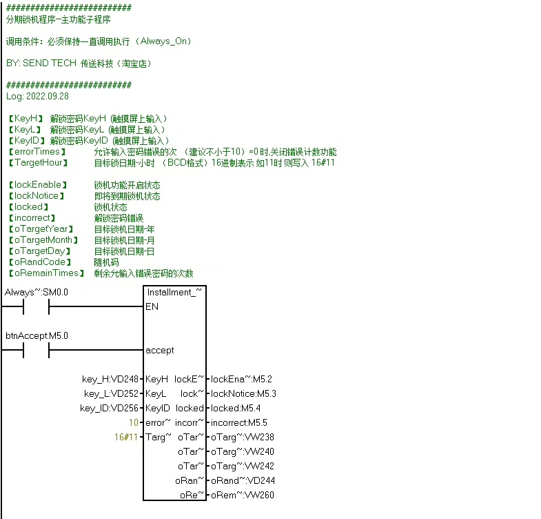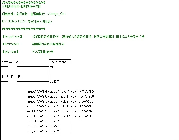 我们先来看一下SMART PLC程序部分。下面是一个简单的示例代码,模拟了分期催款的基本逻辑: