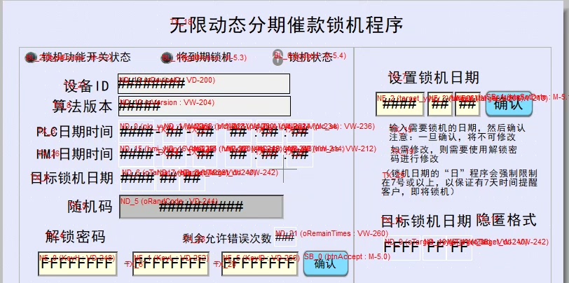 - 界面元素 :通过 显示当前分期阶段和应还款金额,数据绑定到PLC中的变量。 用于用户确认还款操作,点击按钮会触发