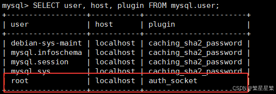 Ubuntu/Debian 系的 MySQL/MariaDB 默认把 root 设置成 auth_socket(用系统 root 身份登录,不用密码)。