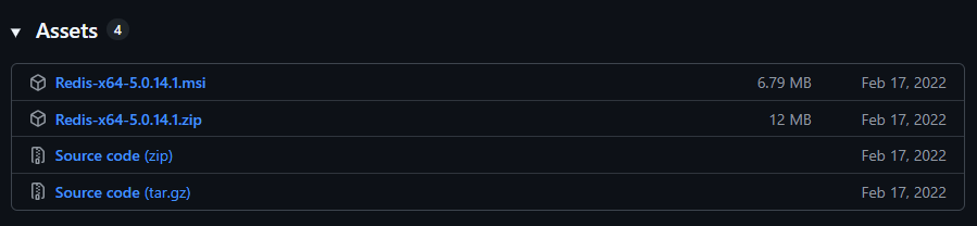 ② 或下载 Redis-x64-5.0.14.1.zip(手动解压并手动配置)