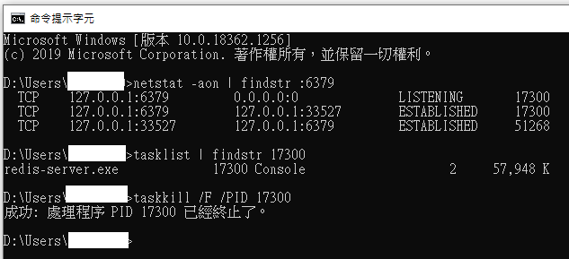 [2. 查看某端口是否被占用(默认是6379,在redis.windows.conf中也可查看设定)](#2. 查看某端口是否被占用(默认是6379,在redis.windows.conf中也可查看设定))