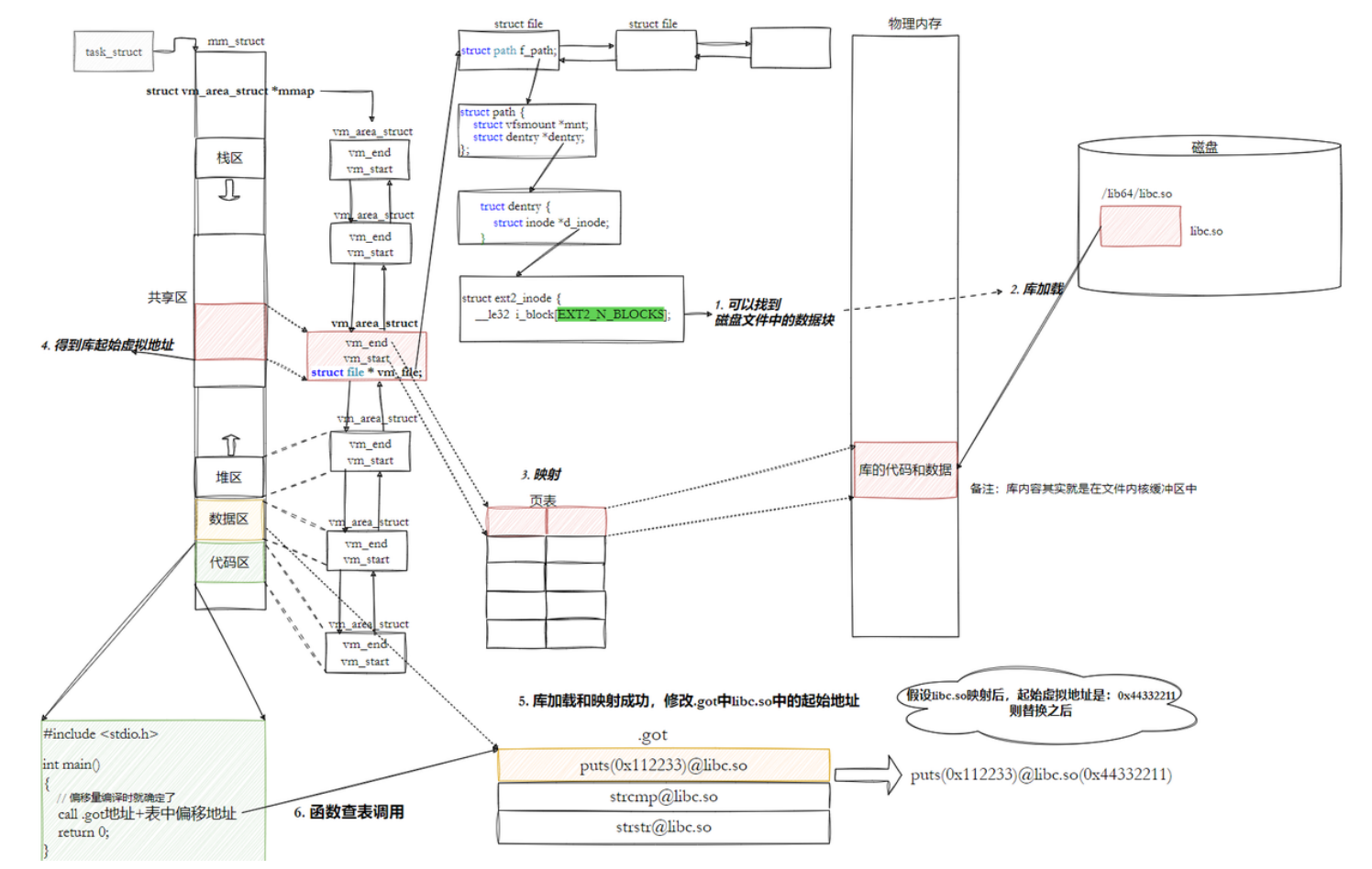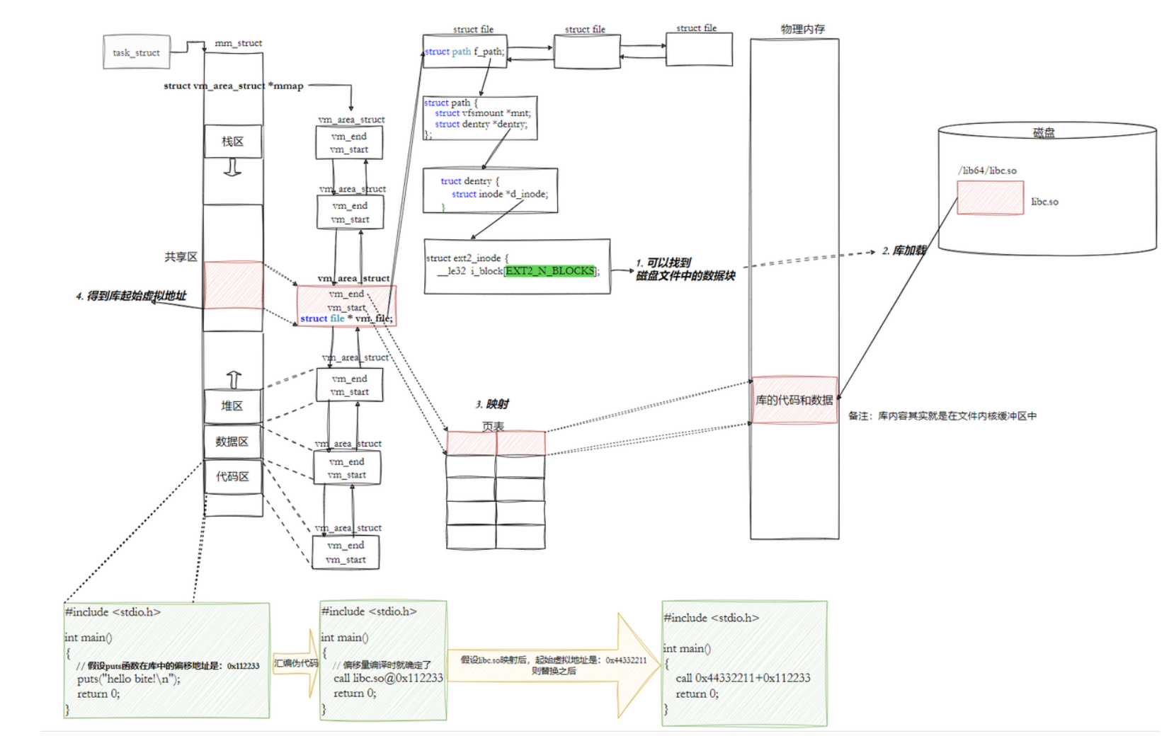 所以进程就可以根据库的路径找到这些库,然后将这些库加载到内存中;此外也要将库映射到进程的地址空间中