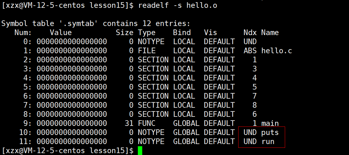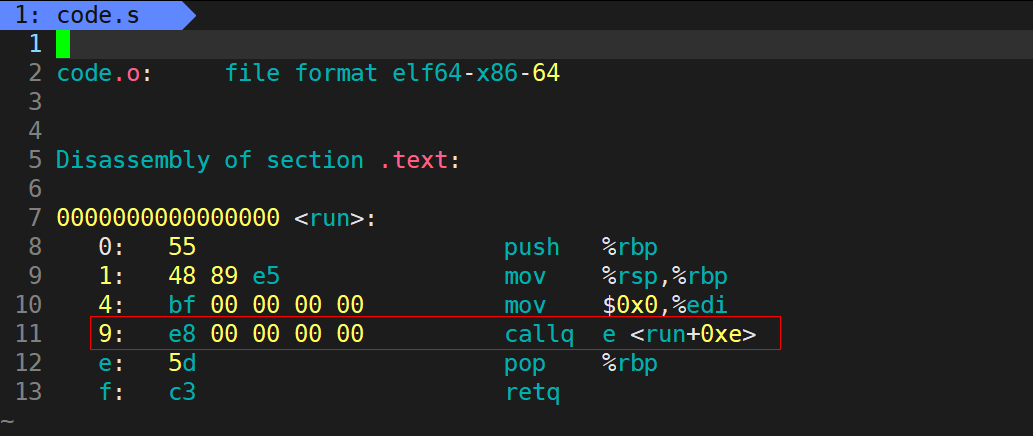 hello.c的时候,编译器是完全不知道printf和run函数的存在的,比如它们位于内存的哪个区块,代码长什么样都是不知道的。因此,编译器只能将这两个函数的跳转地址先暂时设为0。