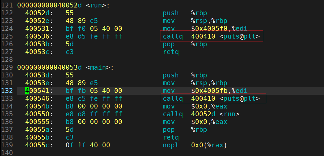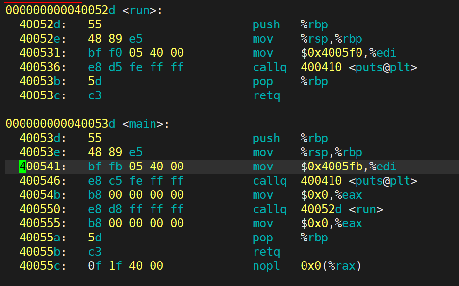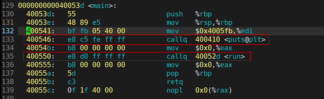 我们可以看到这里的call指令,它们分别对应之前调用的printf和run函数,但是你会发现它们的跳转地址都被设成了0。那这是为什么呢?