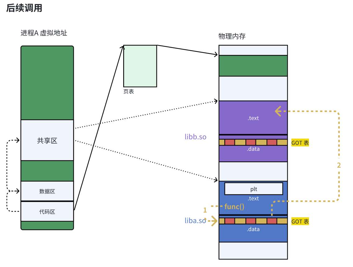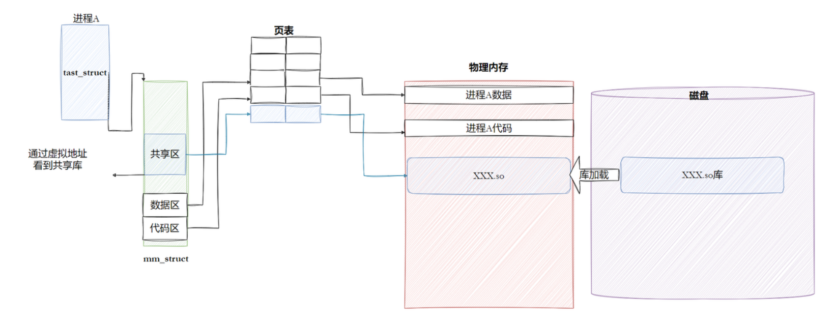 - 而且:整个调用过程,是从代码区跳转到共享区,调用完毕在返回到代码区,整个过程完全在进程地址空间中进行的