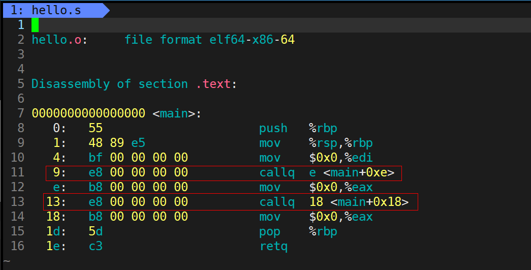 当多个.o文件进行链接时,编译器就找到了这些函数的地址,并且将0修改为具体的地址。