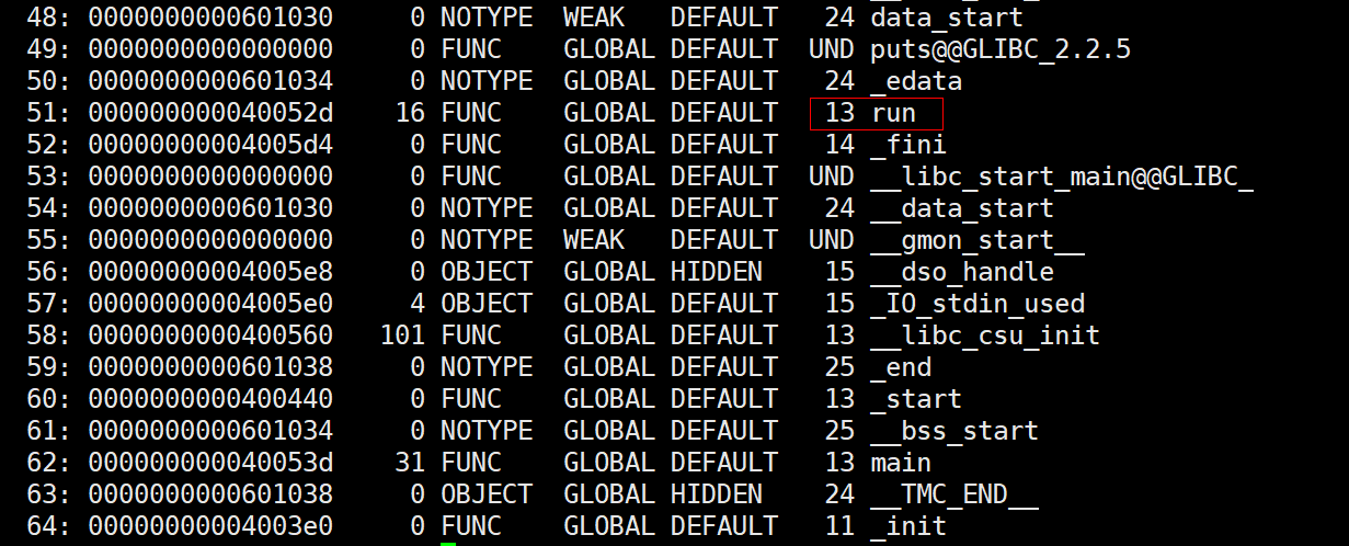 .text节 :是保存了程序代码指令的代码节。.data节 :保存了初始化的全局变量和局部静态变量等数据。.rodata节 :保存了只读的数据,如一行C语言代码中的字符串。由于.rodata节是只读的,所以只能存在于一个可执行文件的只读段中。因此,只能是在text段(不是data段)中找到.rodata节。.BSS节 :为未初始化的全局变量和局部静态变量预留位置.symtab节 : Symbol Table 符号表,就是源码里面那些函数名、变量名和代码的对应关系。.got .plt节 (全局偏移表-过程链接表):.got节保存了全局偏移表。.got节和.plt节一起提供了对导入的共享库函数的访问入口,由动态链接器在运行时进行修改。对于GOT的理解,我们后面会说。