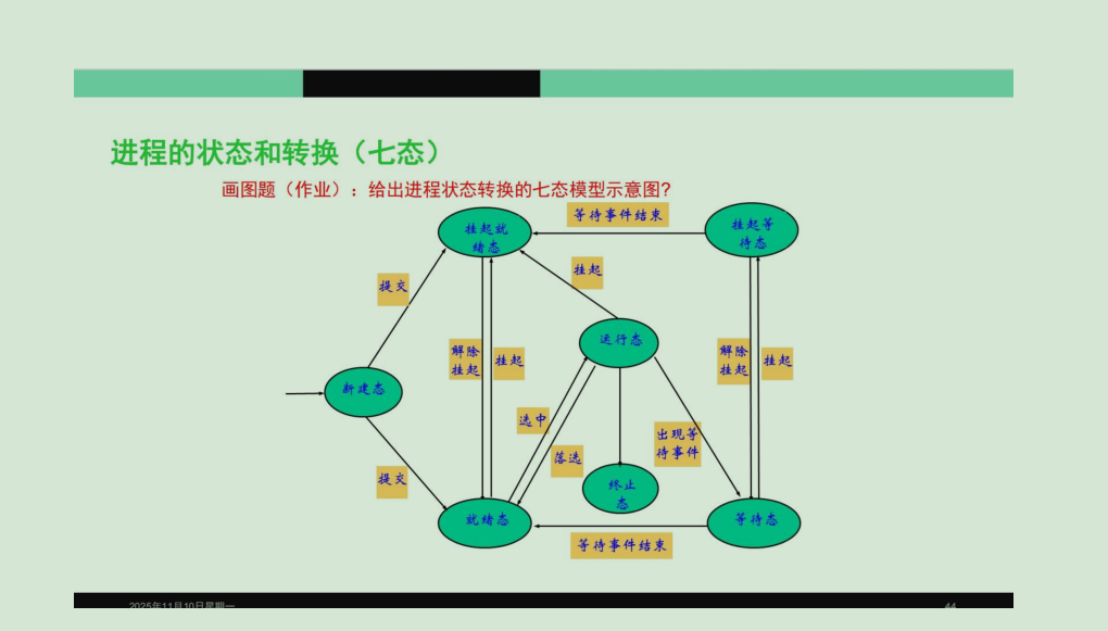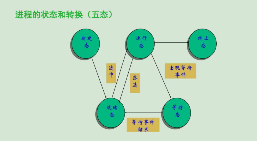 提交,选中/落选,挂起/解除挂起,出现等待事件/等待事件结束