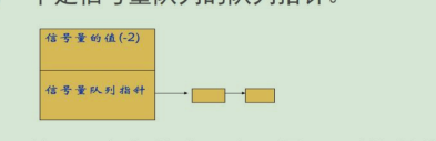实现时,信号量是一种记录型数据解构,有两个分量:一个是信号量的值,另一个是信号量队列的队列指针。