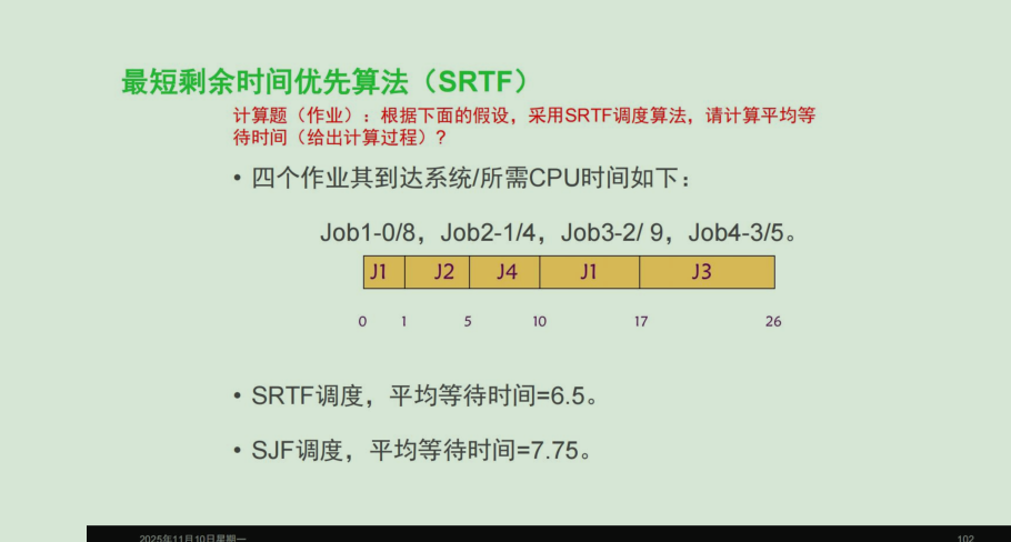 剩下等待时间最短的执行,相同时间两个任务时长进行比较