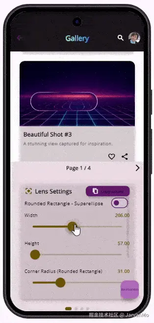 - 🎨 自定义形状 :将透镜设计为圆角矩形、圆形或平滑的超椭圆,使其完美匹配你的界面风格。