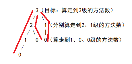 2)当3为当前数,当前树的核心任务就是计算出走到3阶梯的方法数 = 左子树方法数 + 右子树的方法数